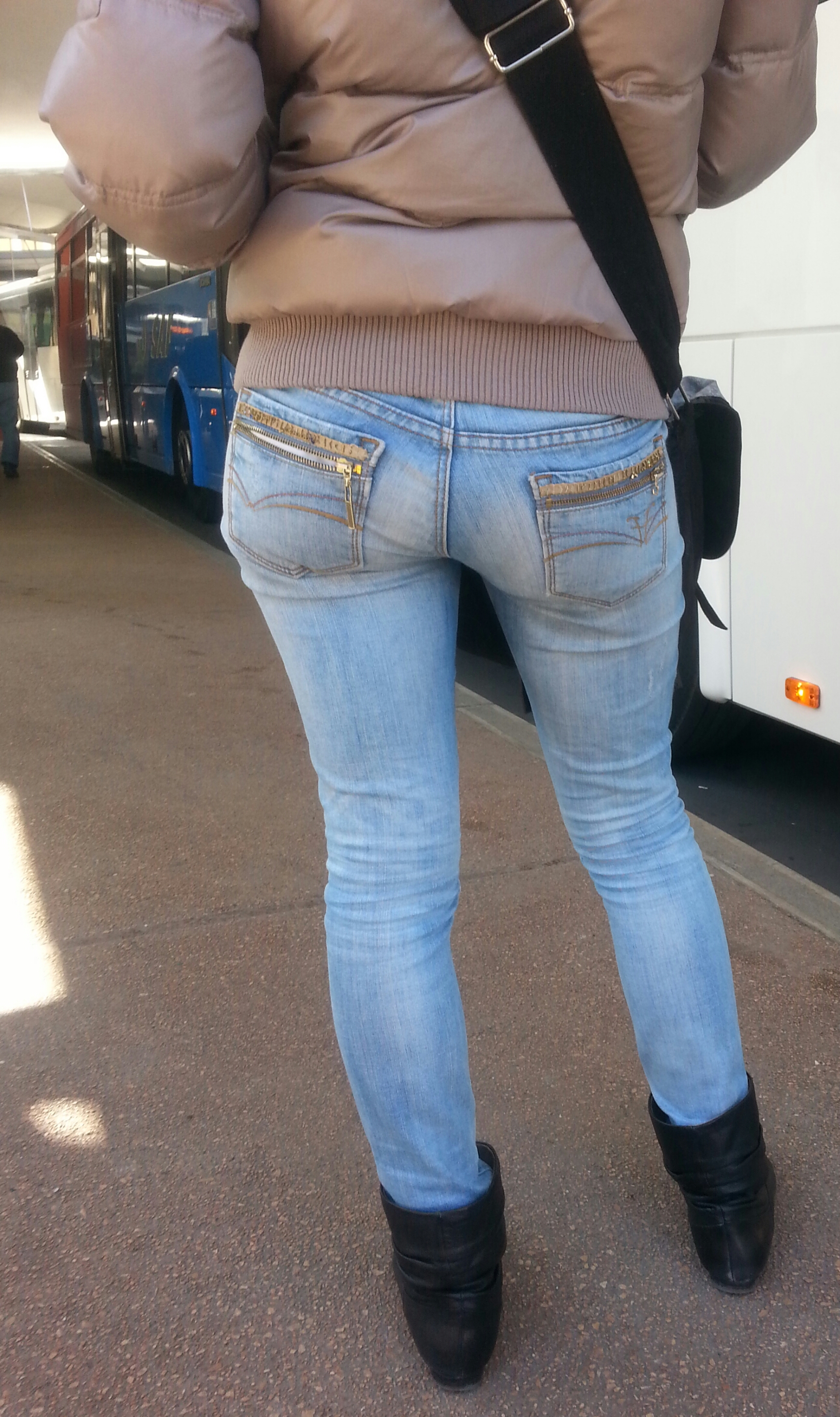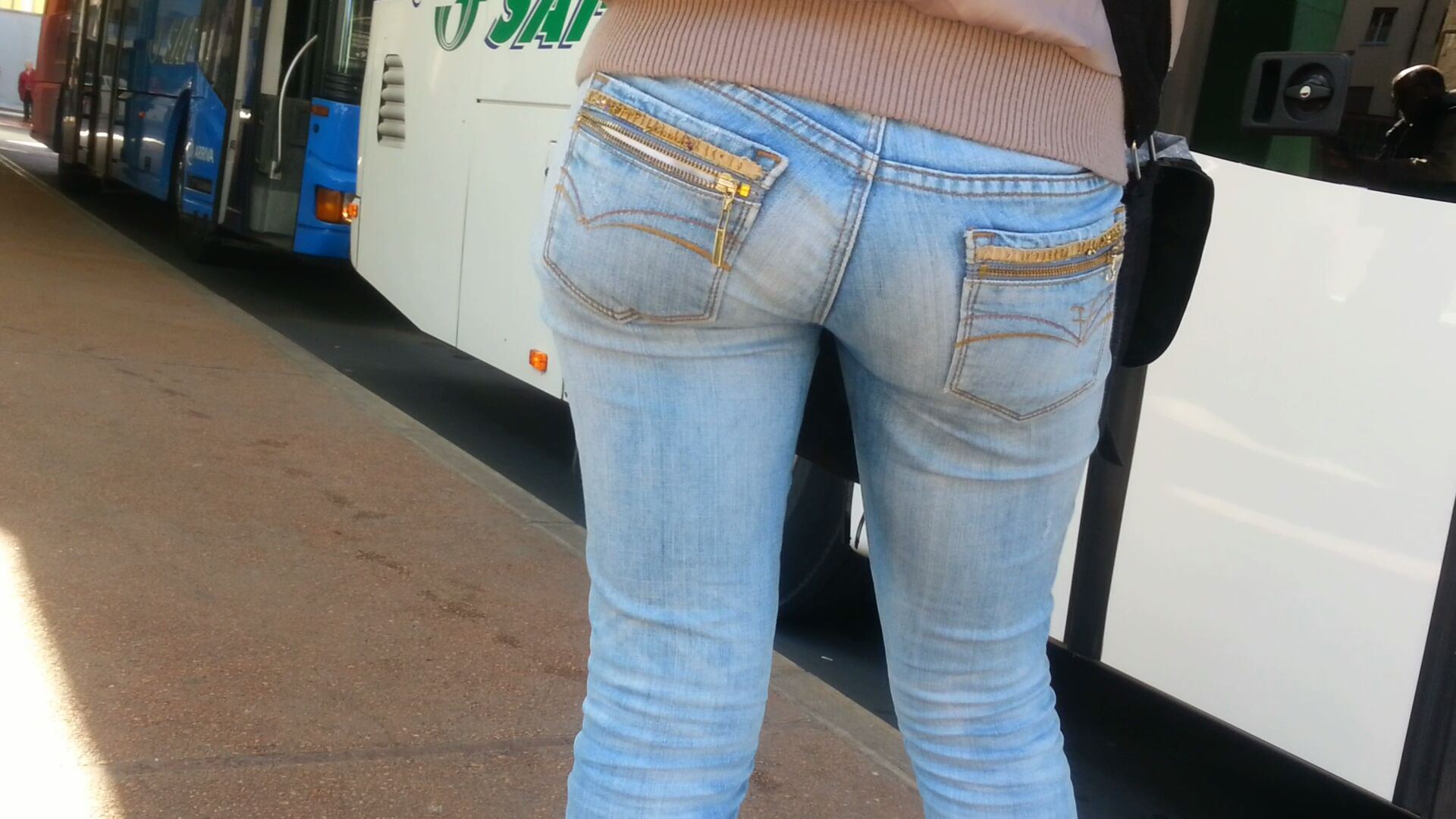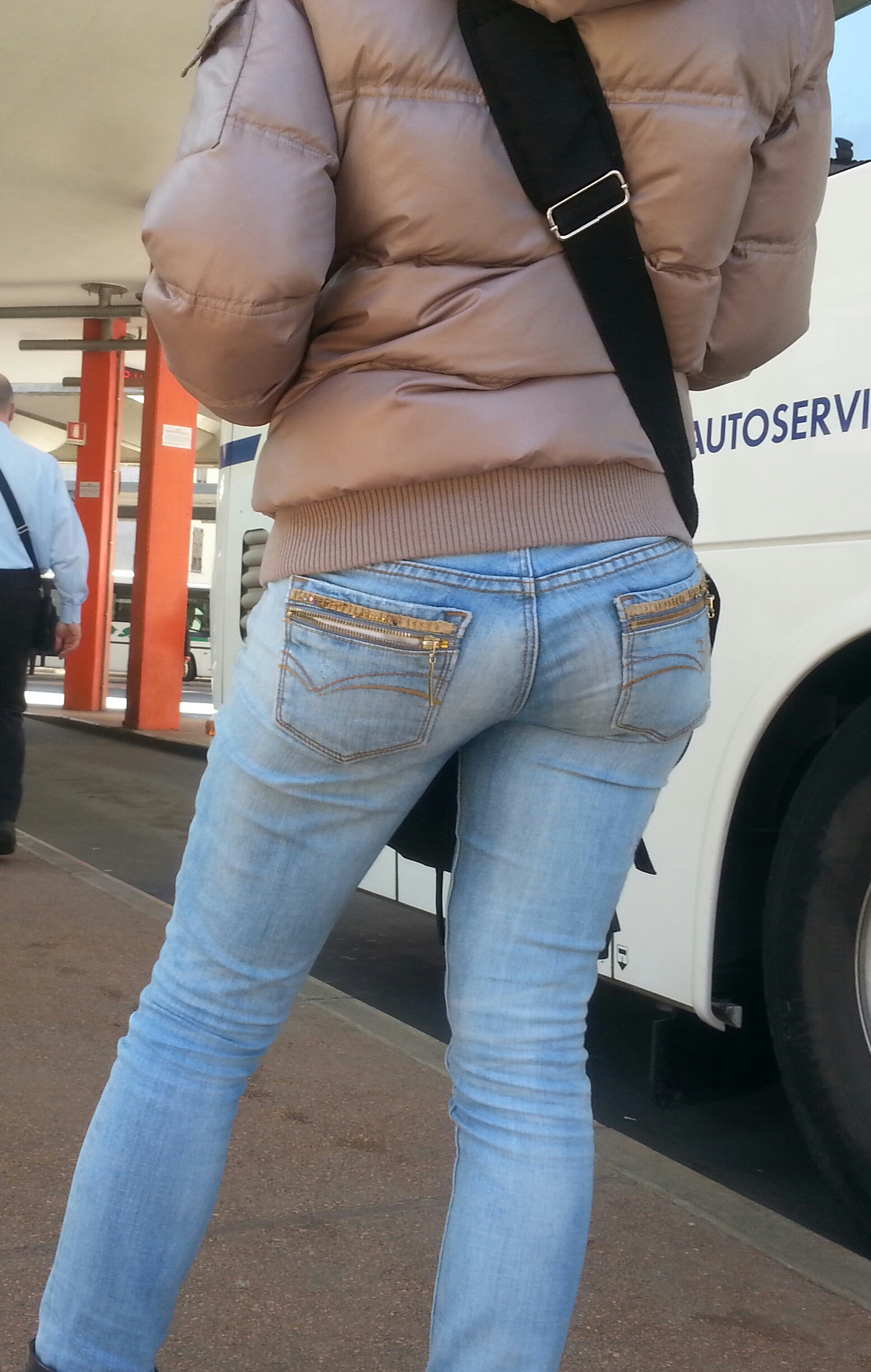 Il bel culo di una ragazza alla fermata del bus