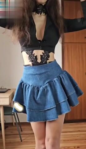Spogliarello di una bella ofanser italiana che rimane nuda. Bel culo e belle zinne