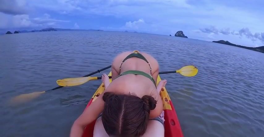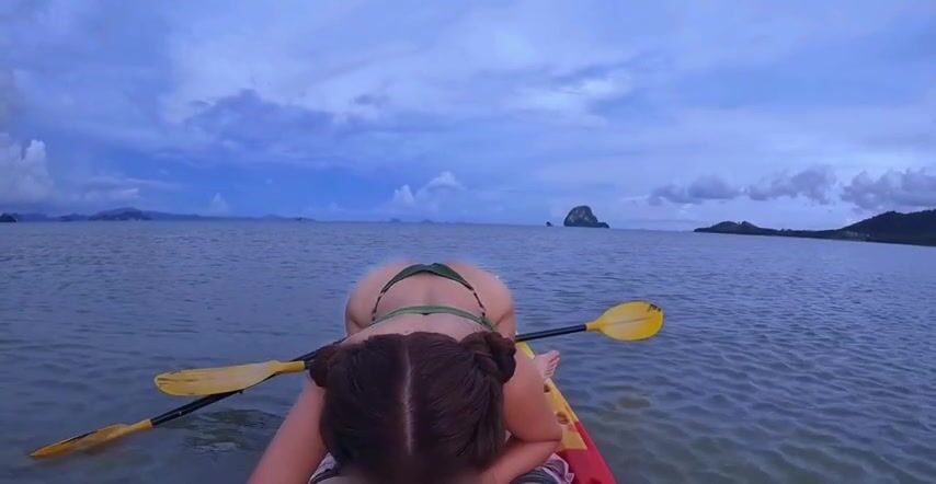 Pompino al mare moglie tettona durante una escursione in canoa