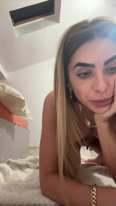 Ragazza romena bionda con tettone e gran fisico si masturba in cam