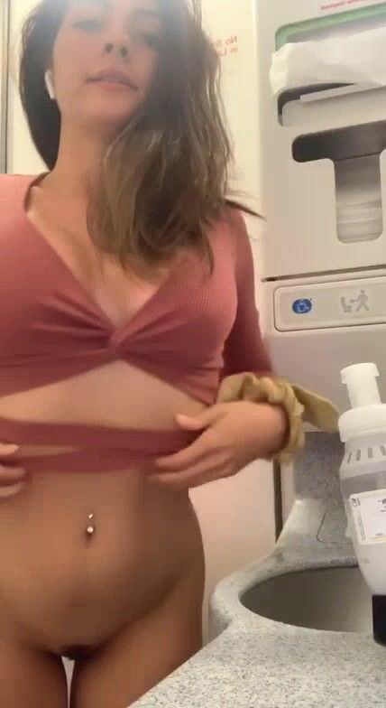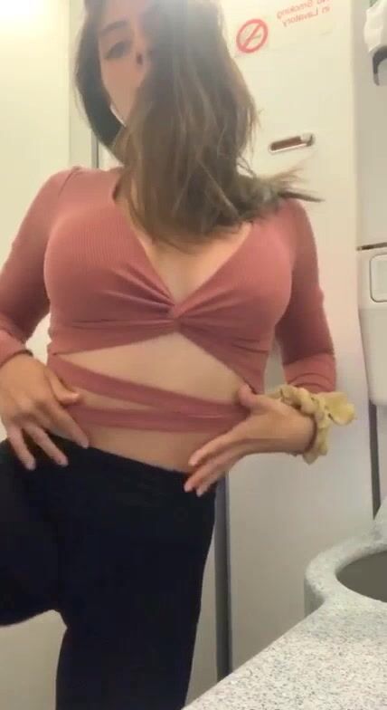 Una calda mora nel bagno dell'aereo si spoglia e riprende