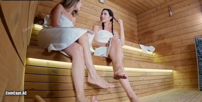 Trio in sauna con due segaiole troie