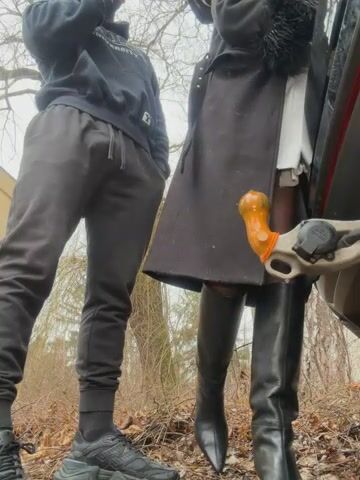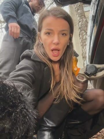Una gran gnocca si masturba all'aperto fuori dalla macchina e prende in fica il gancio da traino dell'auto