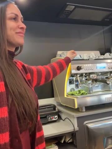 Barista italiana tettona lo succhia al lavoro