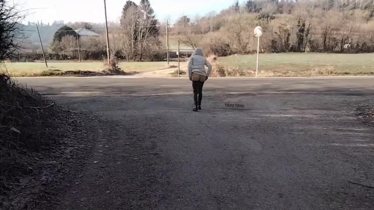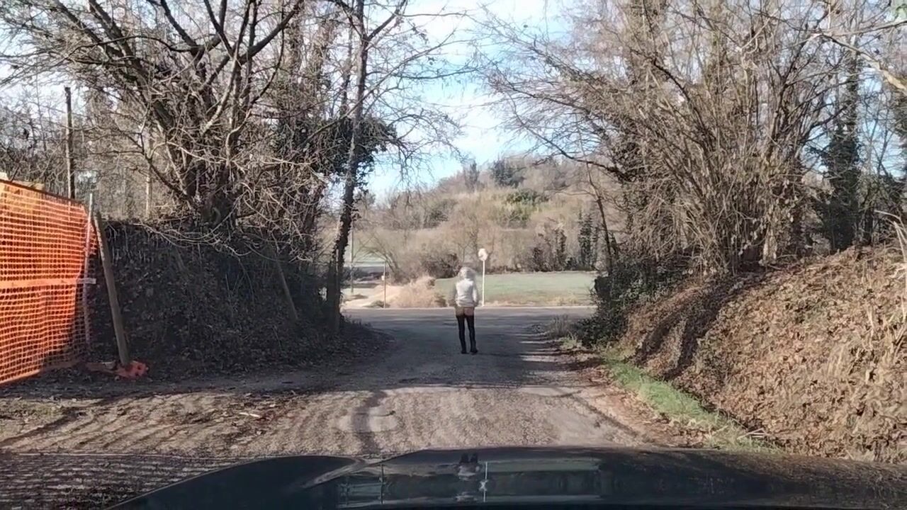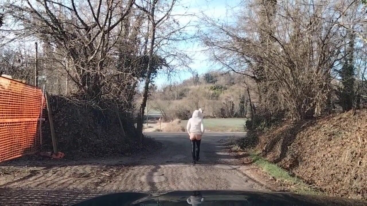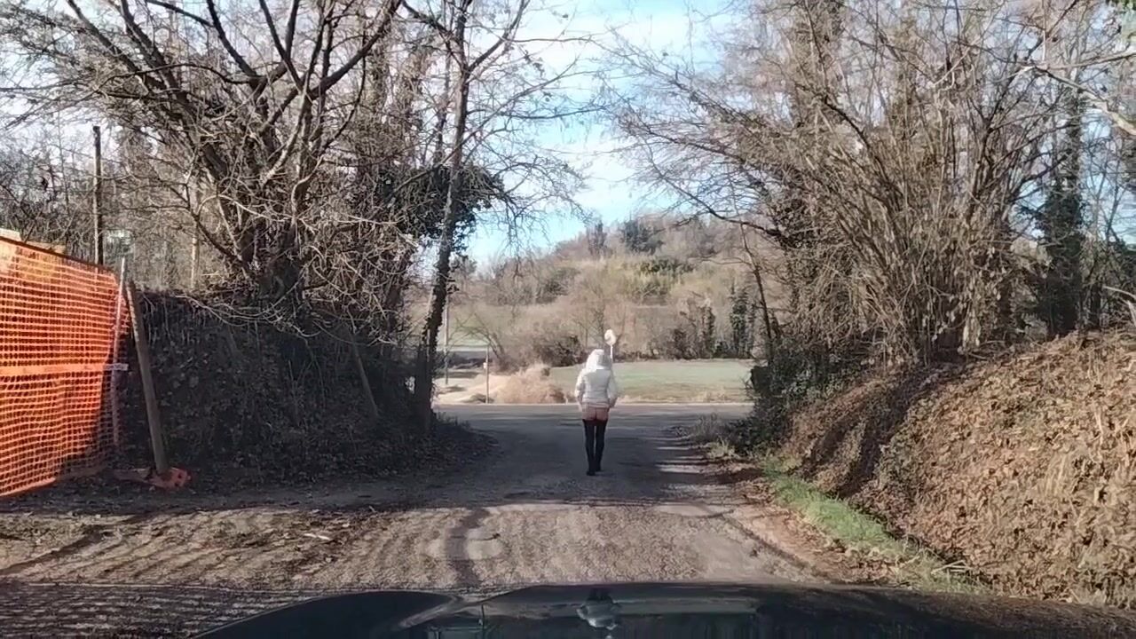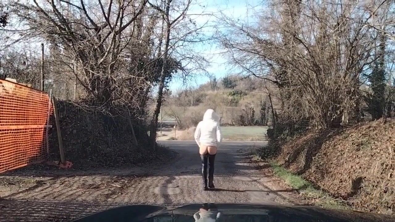 Milf esibizionista mostra il culo outdoor