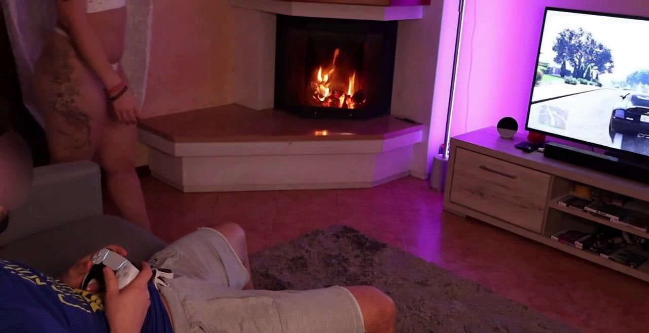 Una bella culona vogliosa di cazzo e lui impegnato a giocare. Ma lei sa essere convincente quando vuole qualcosa