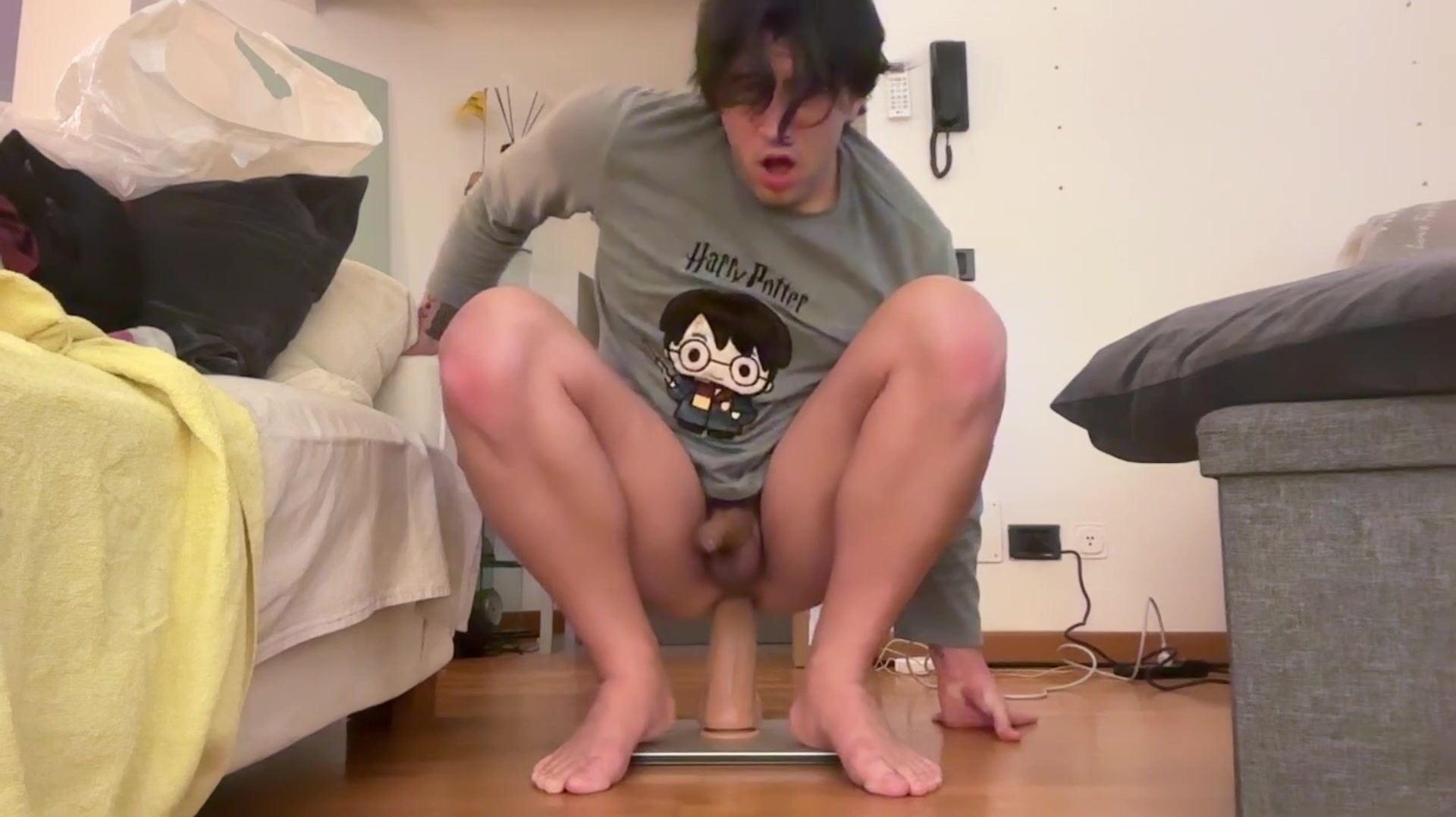 Ragazzo italiano con dildo XXL si espone